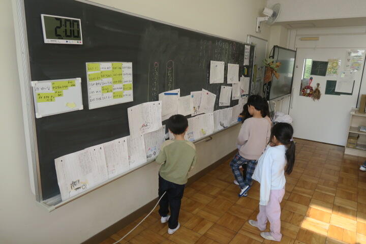 黒板に貼っていました。