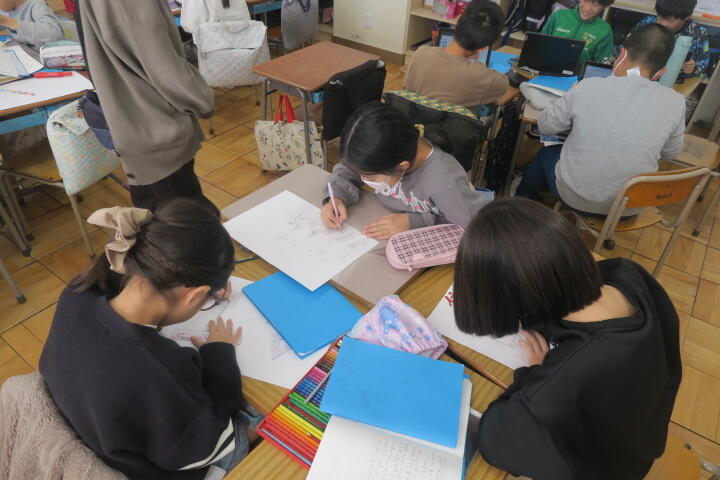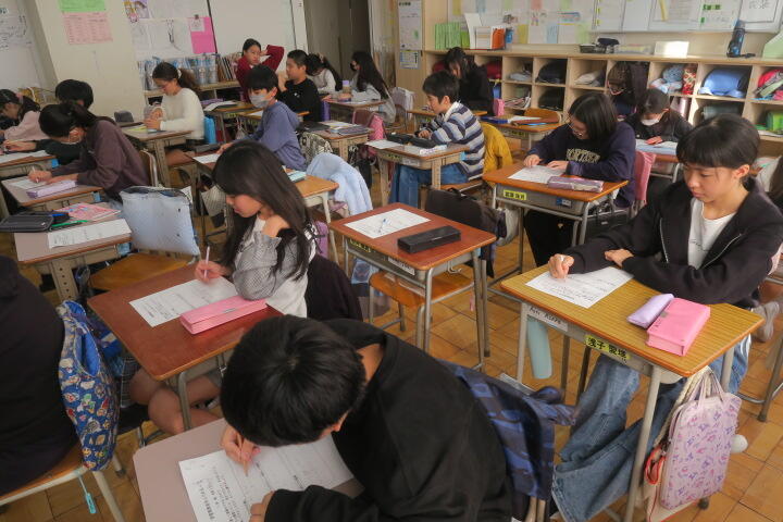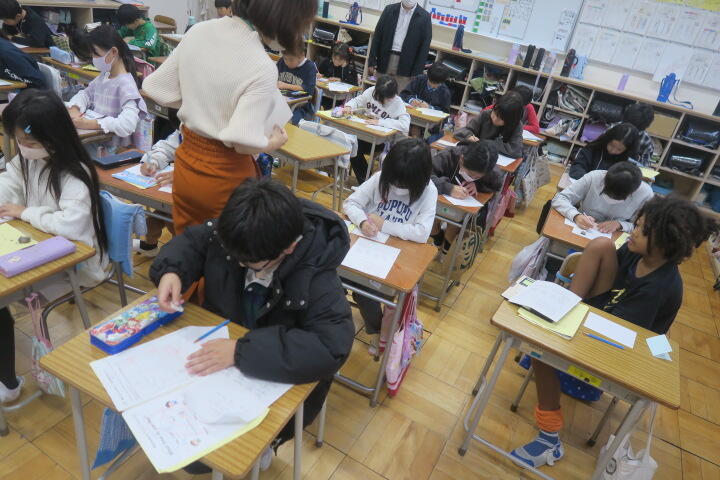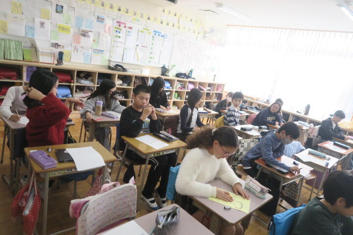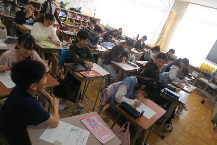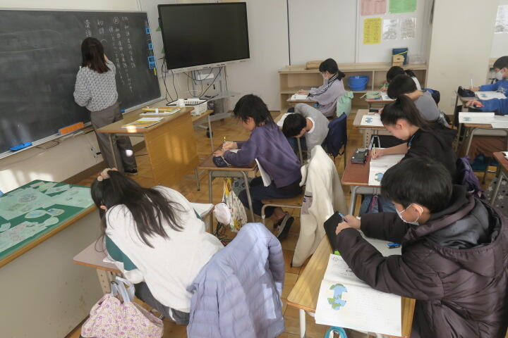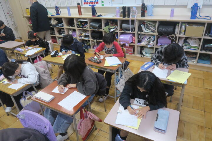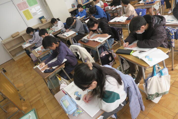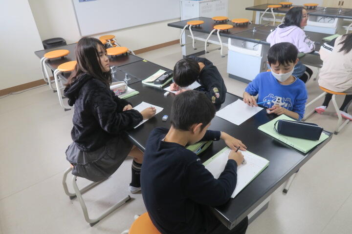 学習を終え、ワークシートに感想などを書いているところでした。