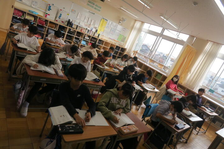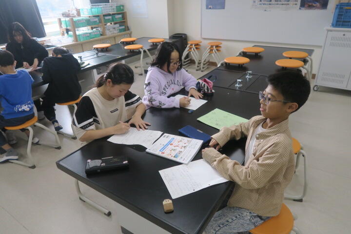 ワークシートに振り返りを書いているところでした。