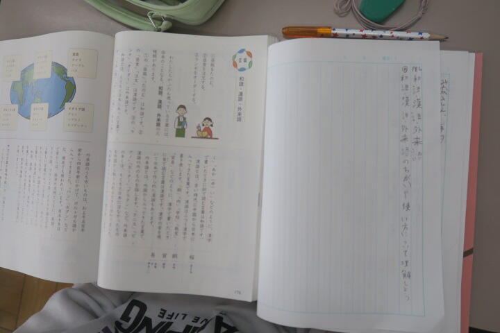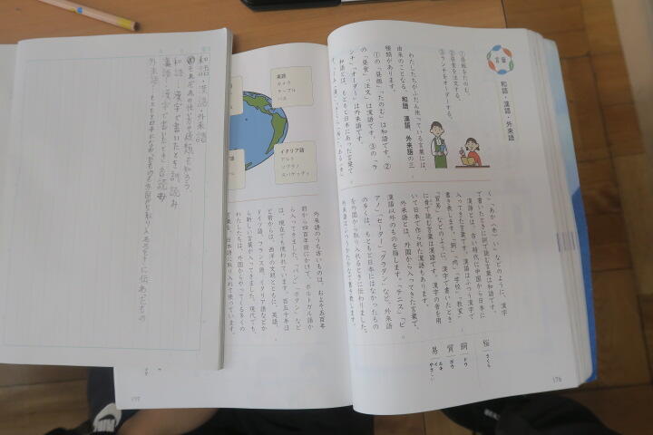 教科書から、和語とは何かなどを見付け、ノートに書いていました。