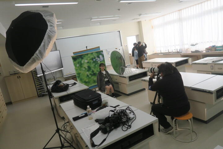 並行して家庭科室で卒業アルバムの個人写真の撮影をしていました。
