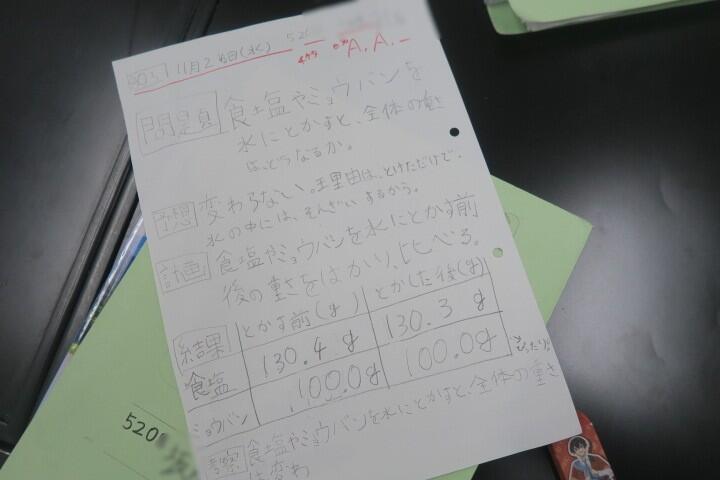 次の実験を始める前の予想などをレポートに書いていました。
