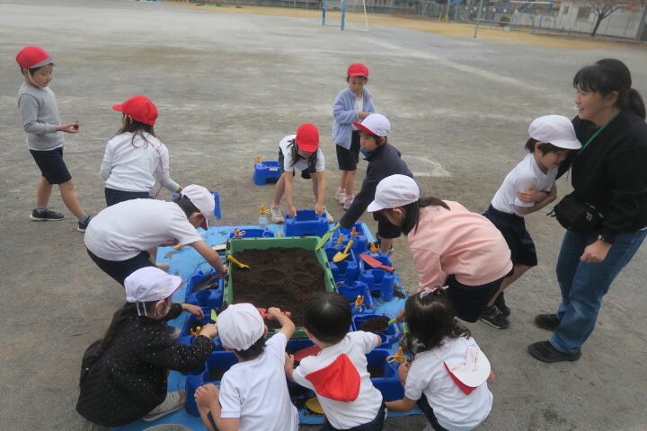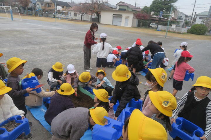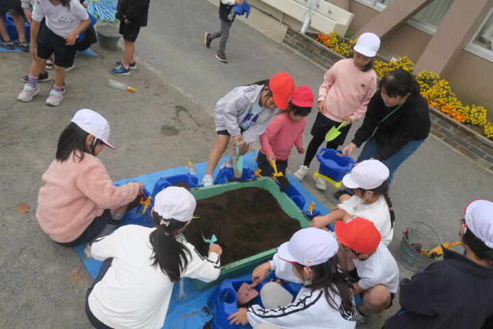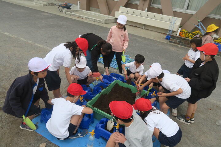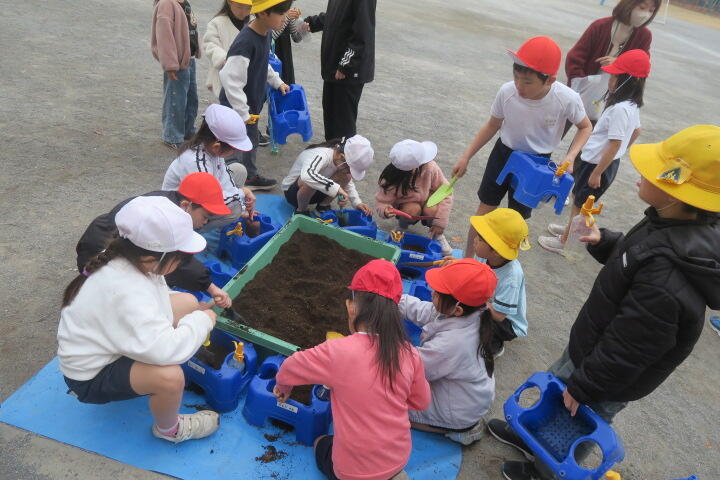 1年生の生活科はチューリップの球根を植える学習です。