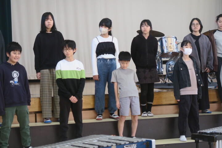 3年生は合唱「おはようのエール」そして、打楽器で演奏する「キッチンビート」