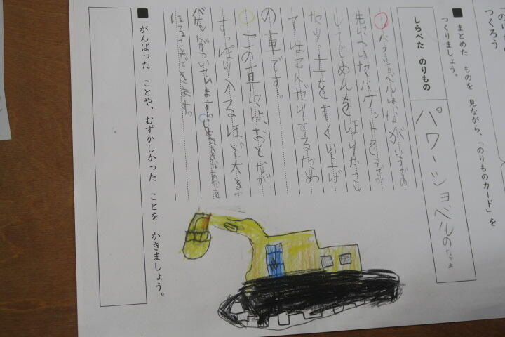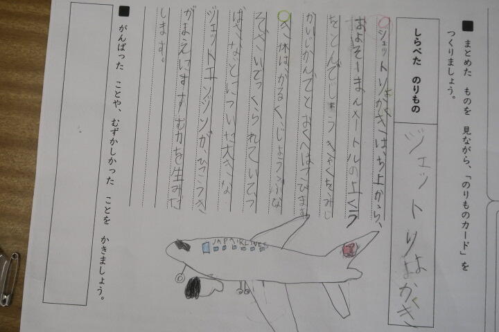 本で調べた乗り物について、それぞれ書いたものを