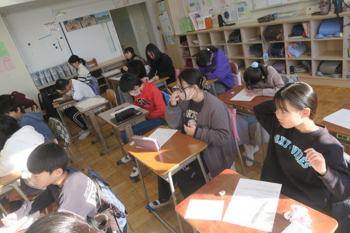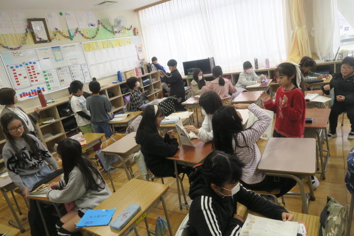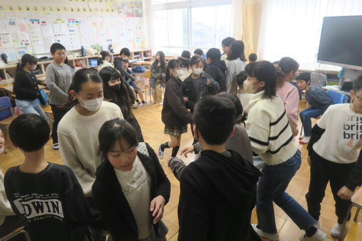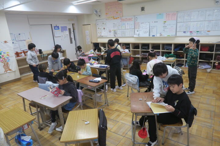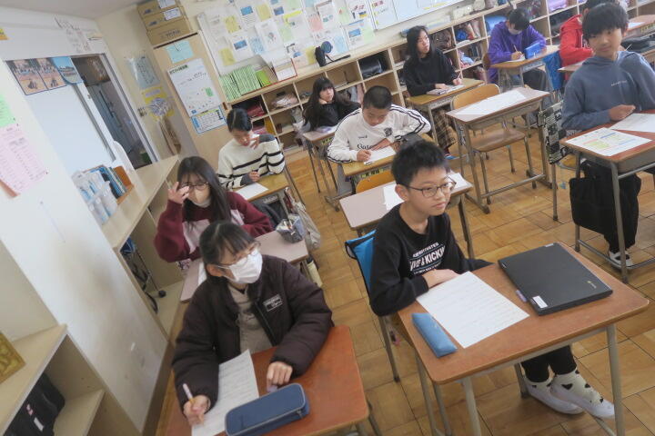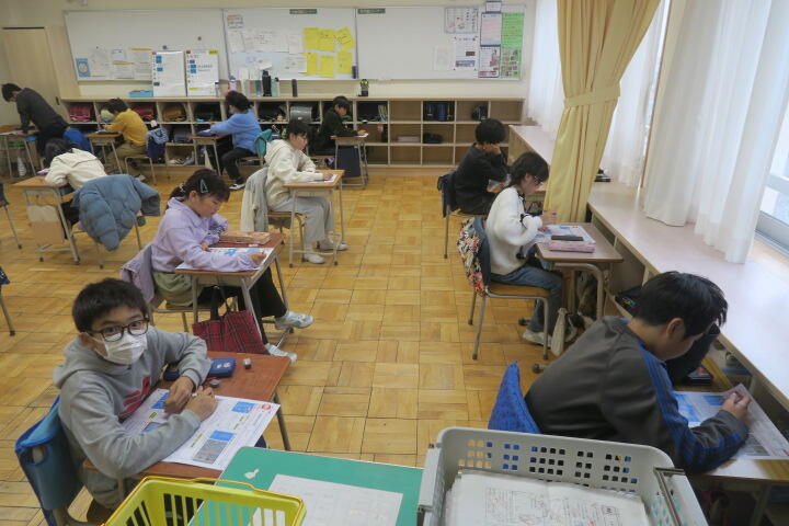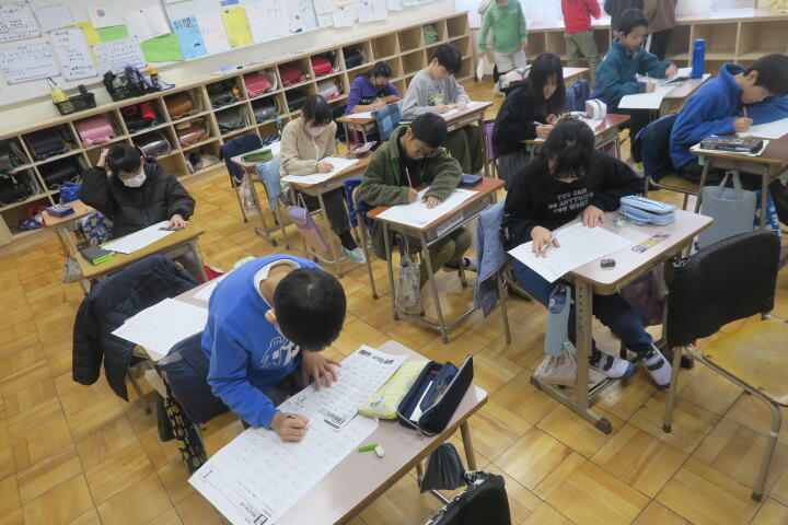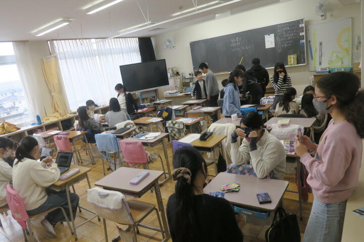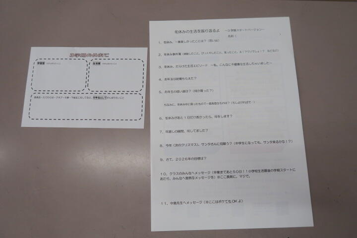 2組の学活は、冬休みの宿題を集めてるところでした。