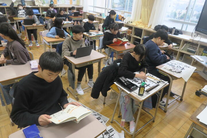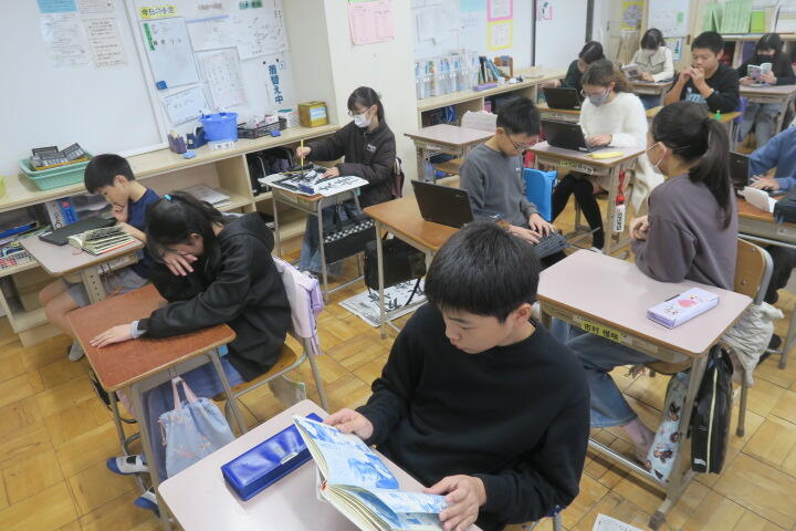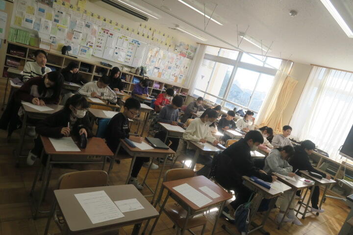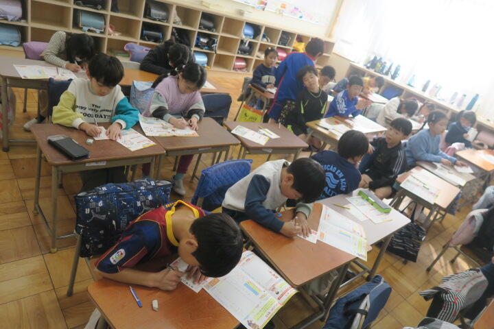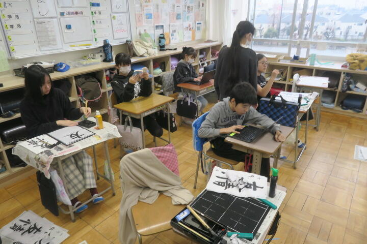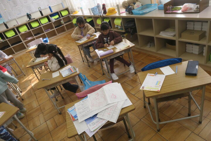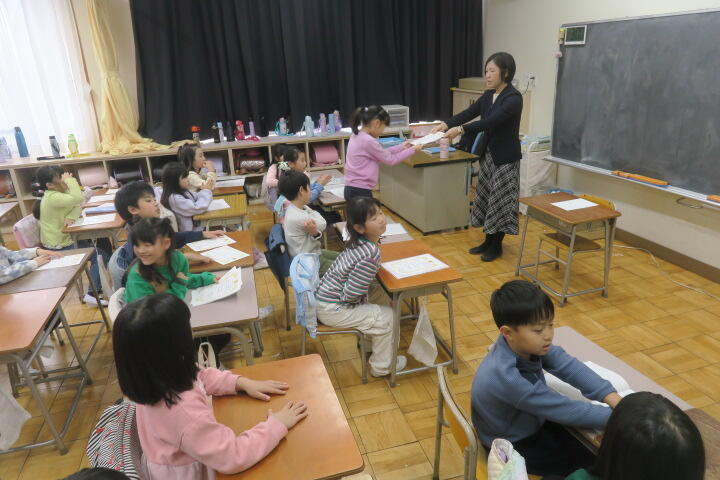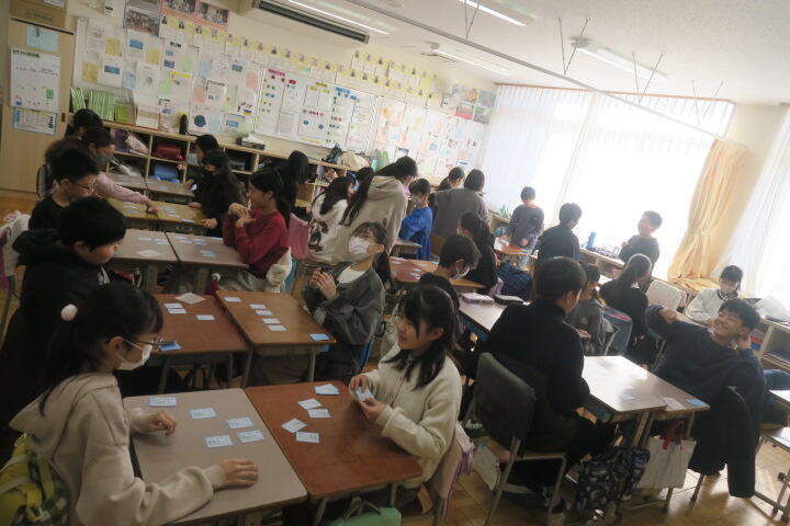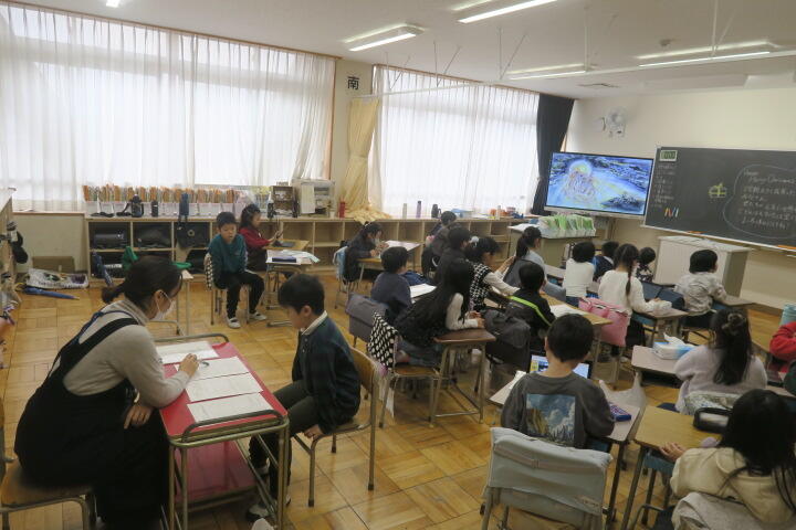 2組の学活は、冬休みの宿題を集めてるところでした。