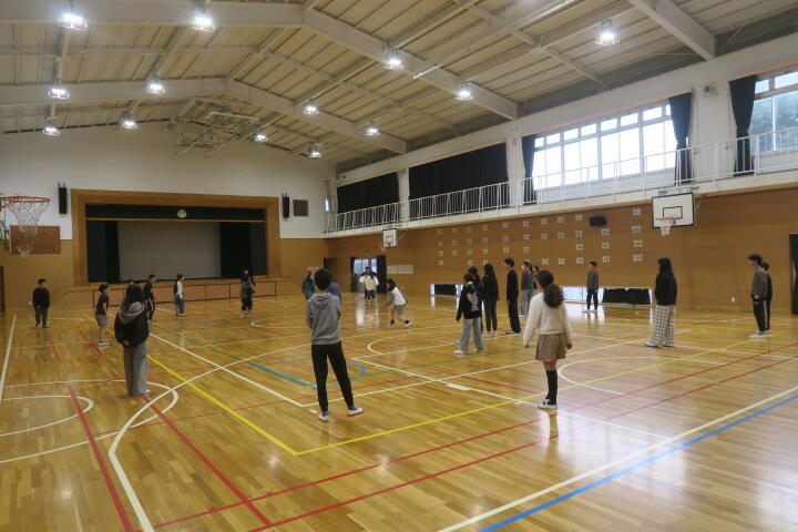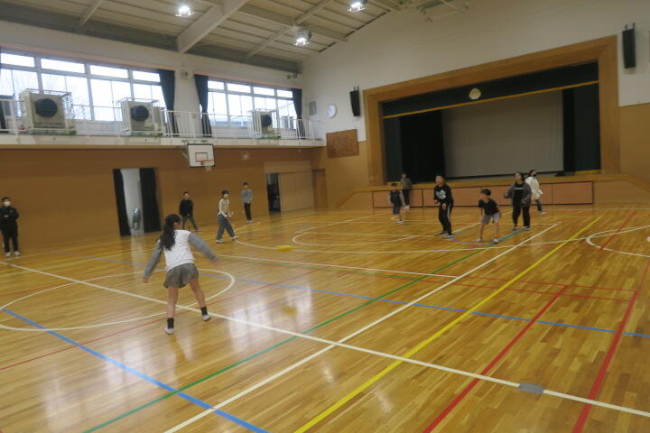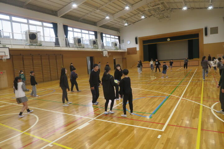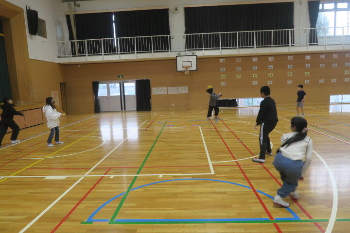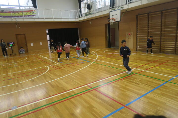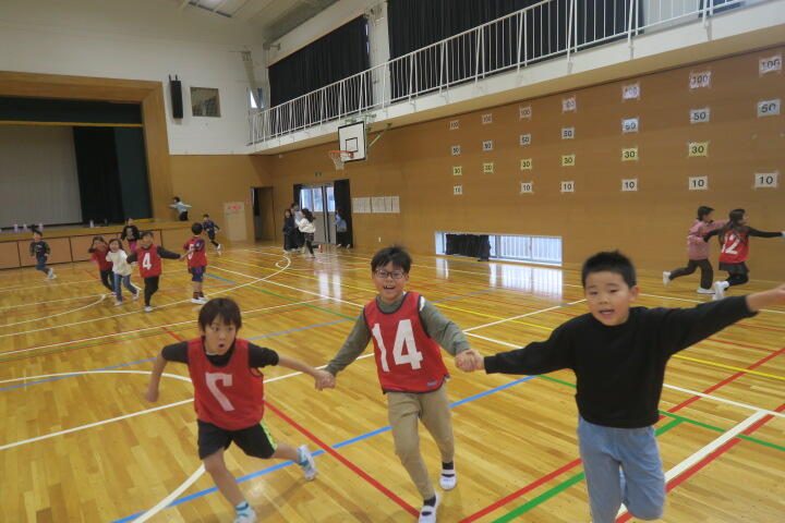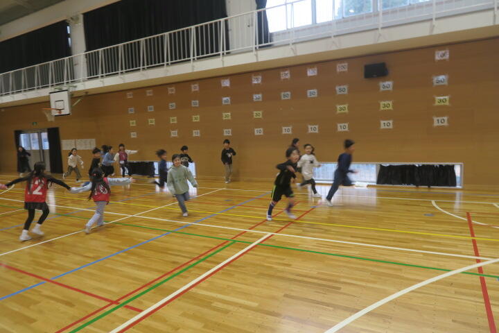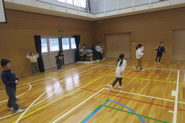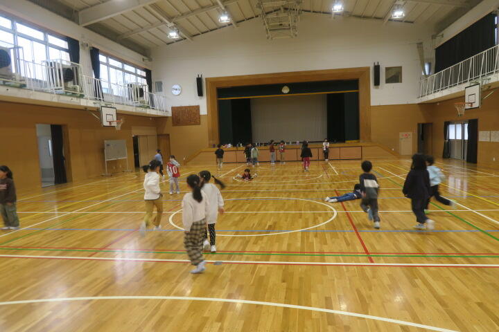 2年生のお楽しみ会は体育館で鬼ごっこです。