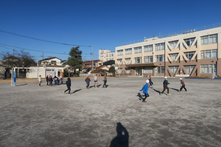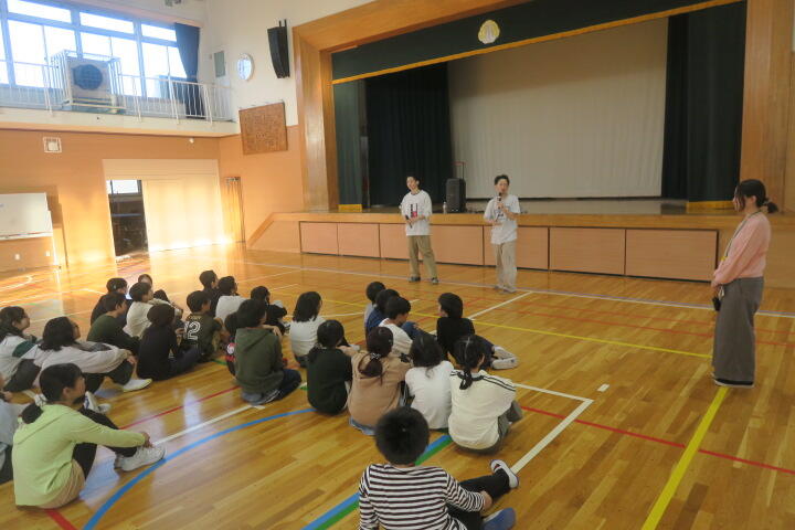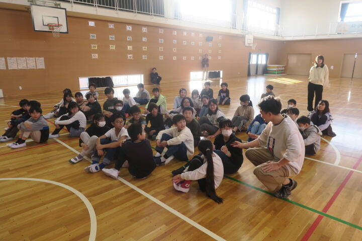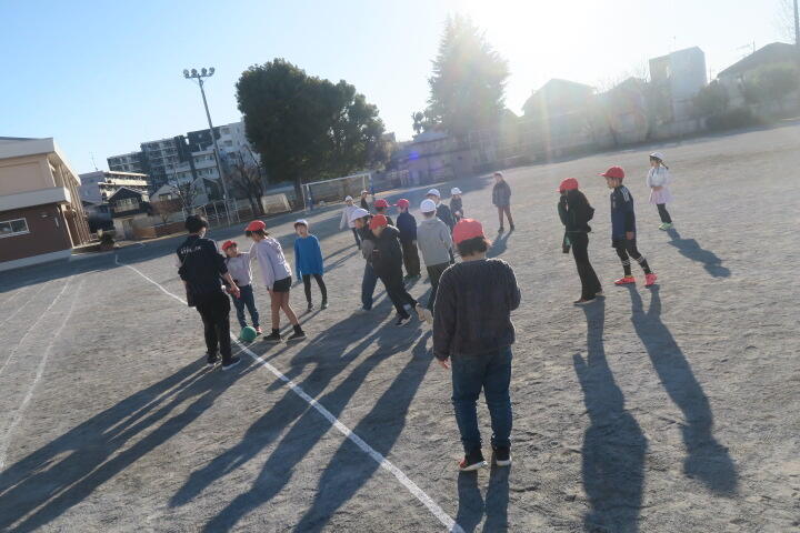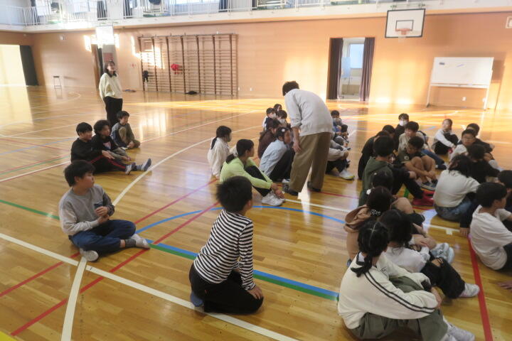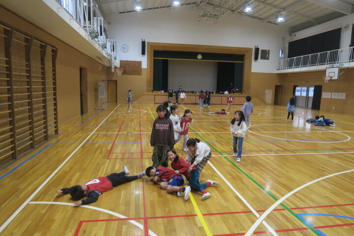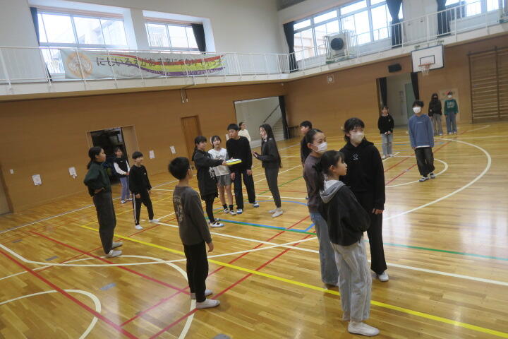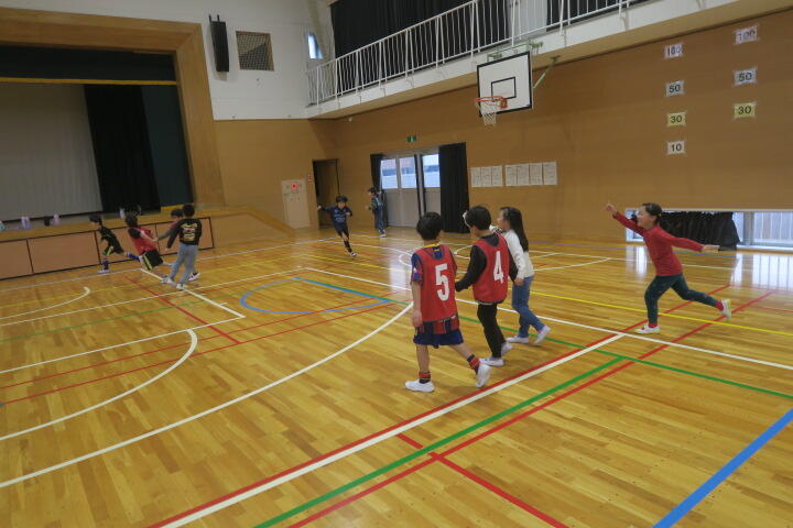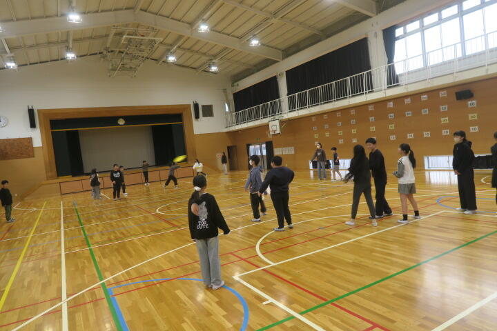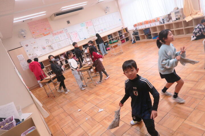 2年生のお楽しみ会は体育館で鬼ごっこです。