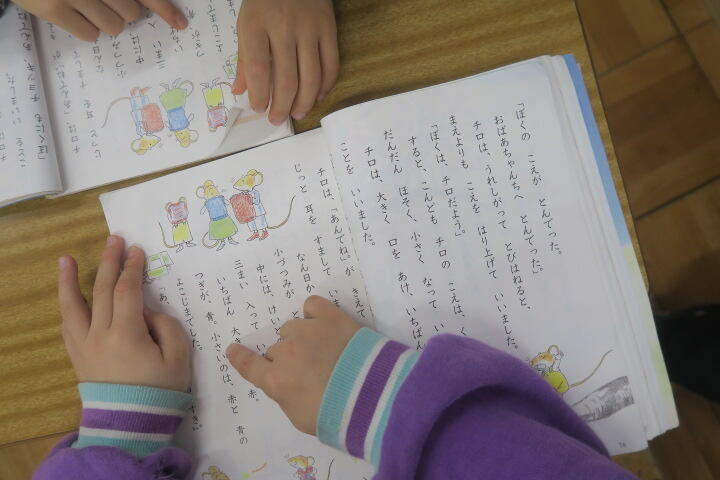 1組の国語は物語文「おとうとネズミのチロ」の学習です。