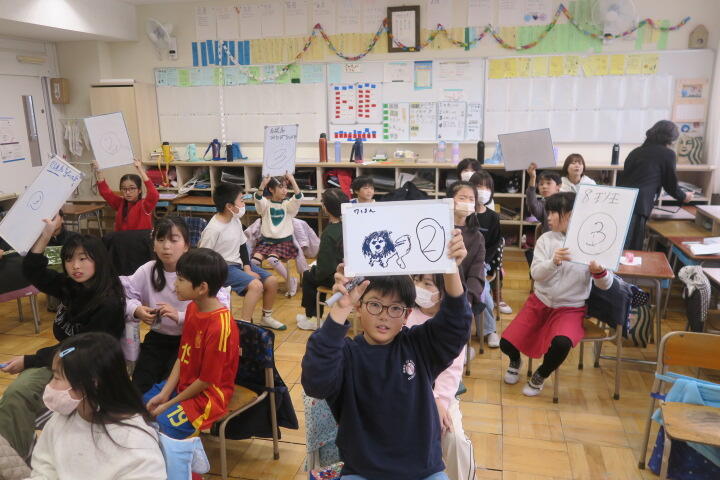 書き終わった後に「私は誰でしょうクイズ」をするそうです。