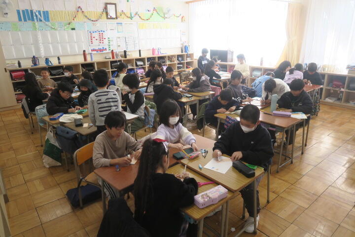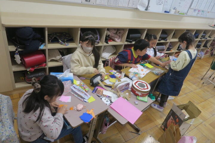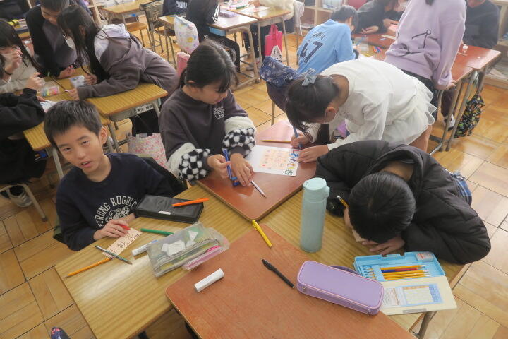 グループごとにお楽しみ会の景品やプレゼントを作っているところでした。