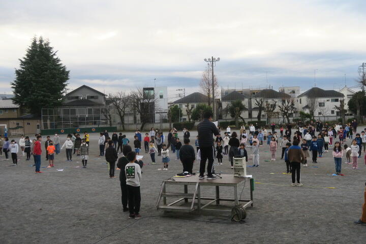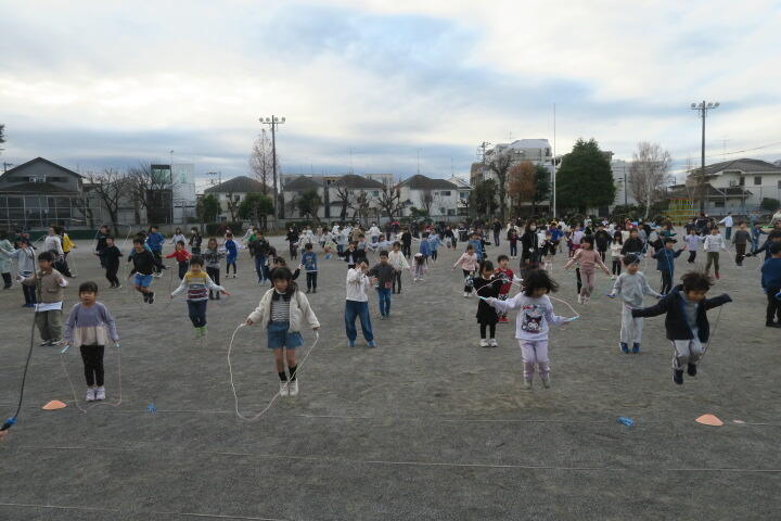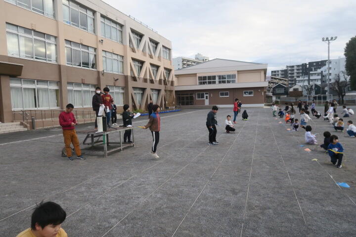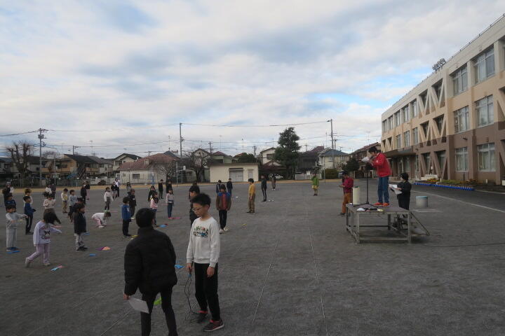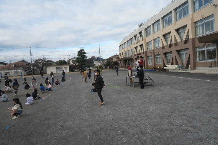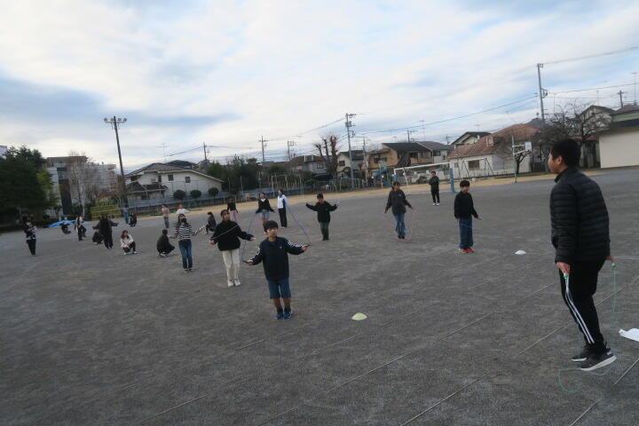 拡販に分かれて、6年生が中心となり、縄跳びの練習をしました。