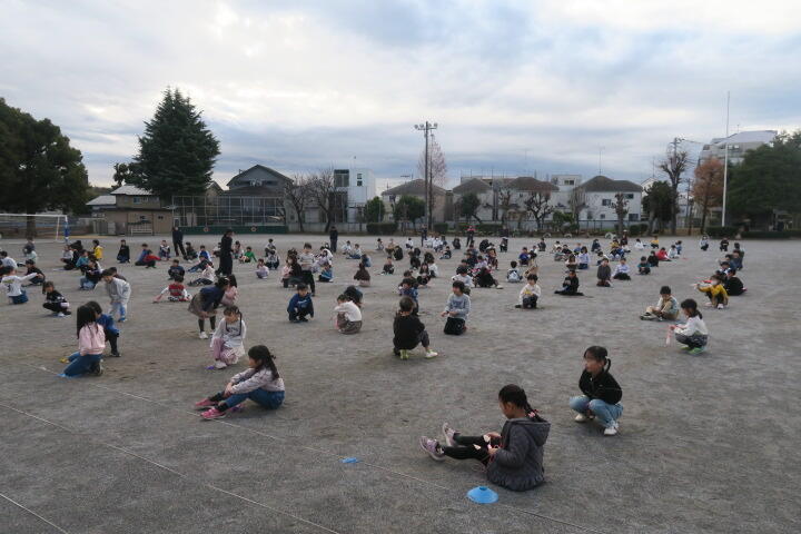 本日の集会は、たてわり班で縄跳びの練習をする集会でした。