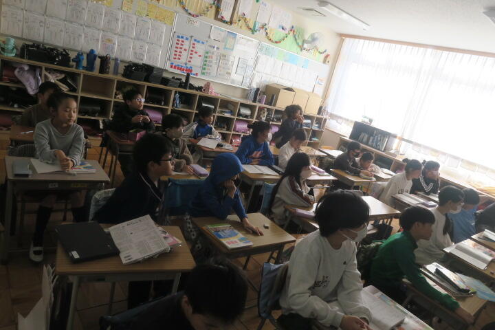 教科書やワークシートを使って学習を進めていました。