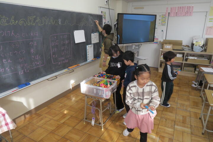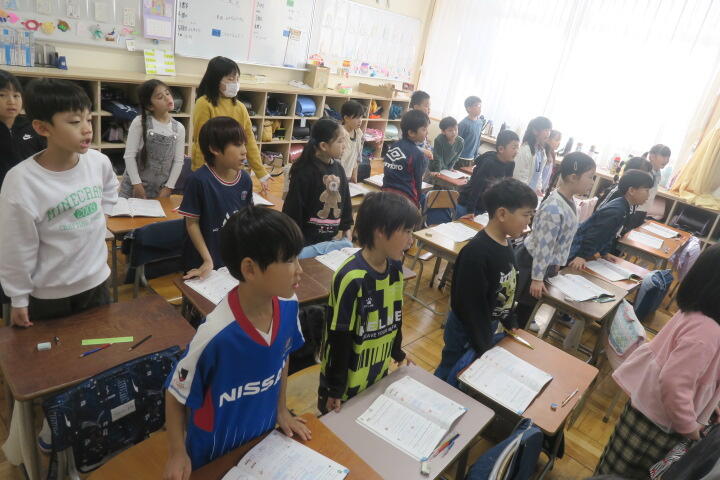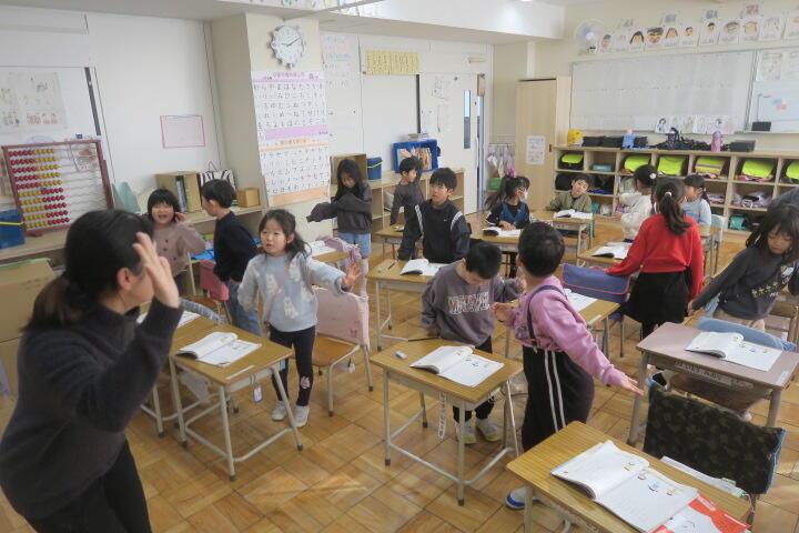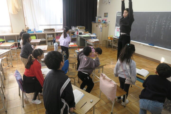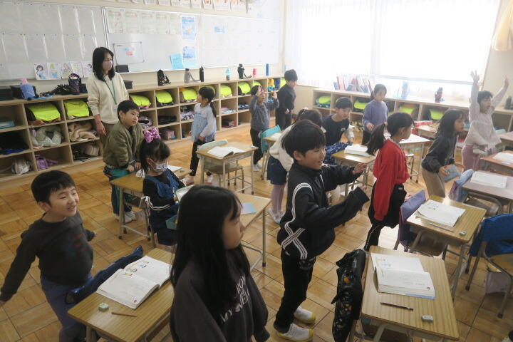 授業に入る前に手遊び運動をしているところでした。