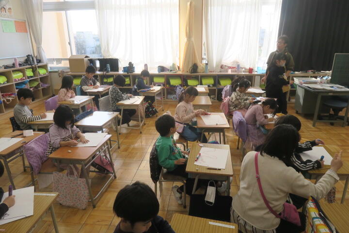 1組の図工は「せんのぼうけん」の学習です。