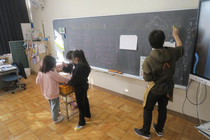 黒板に書いた先生問題をみんなで解いているところでした。