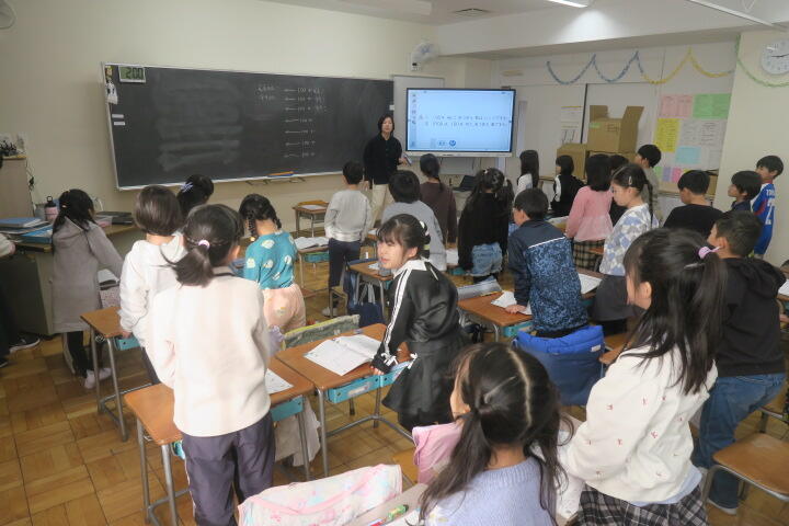 教科書の問題を電子黒板でいっしょに考えていました。