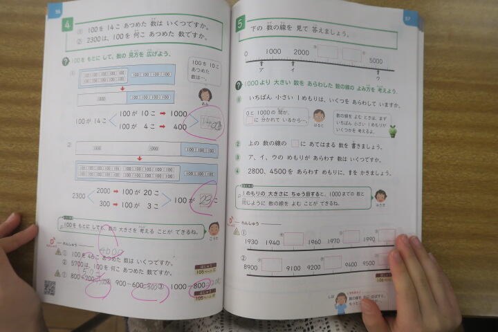 2組の算数は大きな数の学習の続きです。