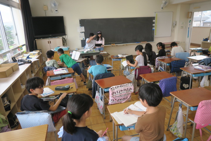 3年生の算数は最初の5分間でかけ算九九の復習をしていました。