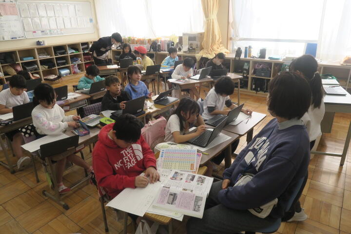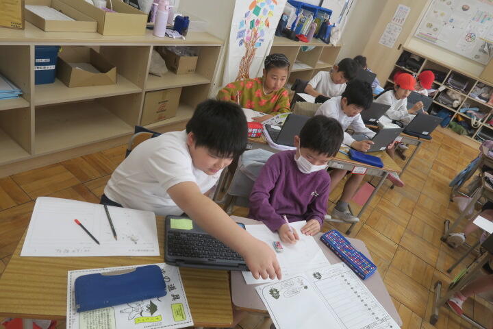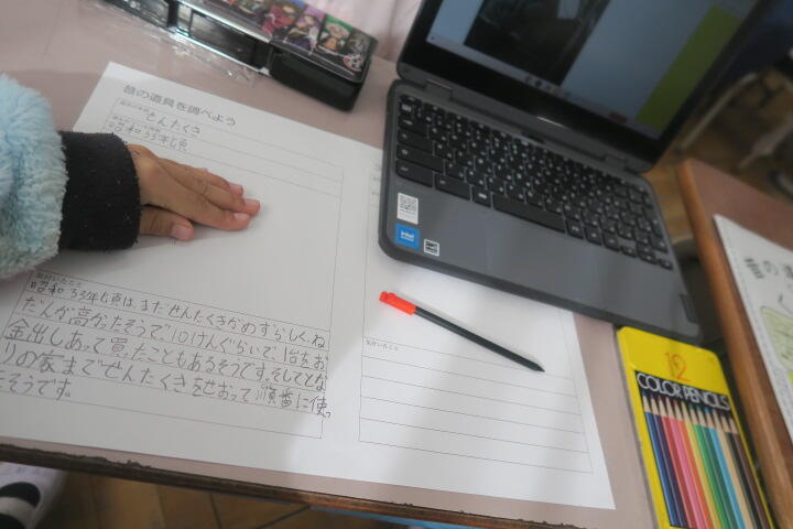 タブレットで昔の道具を調べ、ワークシートの書いていました。