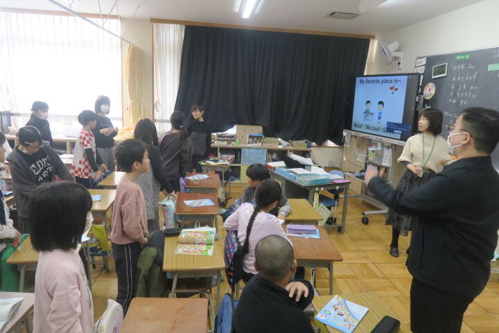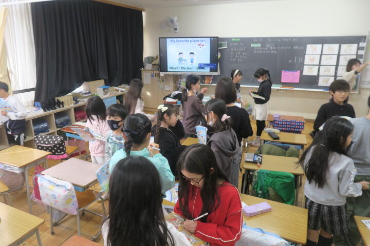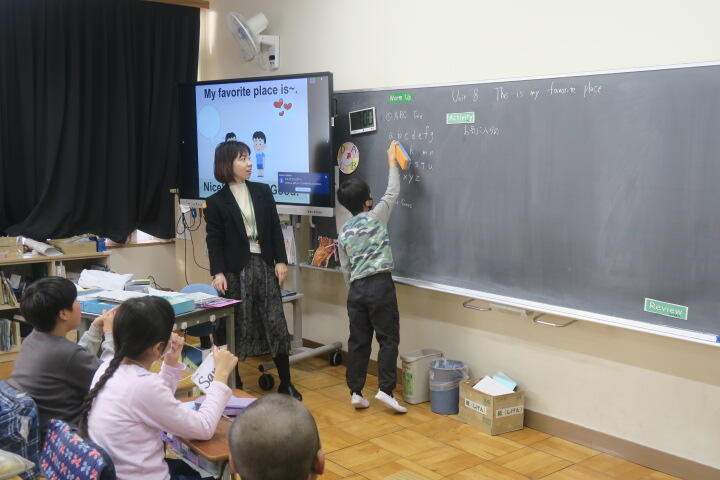 4年生の外国語活動は自分の好きな場所の表現の学習です。