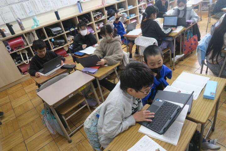 令和7年度 全ての記事 全ての記事 カテゴリ 今日の出来事 連絡事項 アーカイブ 2026年2月 (53) 2026年1月 (128) 2025年12月 (166) 2025年11月 (174) 2025年10月 (163) 2025年9月 (164) 2025年8月 (5) 2025年7月 (135) 2025年6月 (158) 2025年5月 (164) 2025年4月 (169) 2025年3月 (131) 2025年2月 (127) 2025年1月 (102) 2024年12月 (109) 2024年11月 (131) 2024年10月 (135) 2024年9月 (107) 2024年8月 (0) 2024年7月 (112) 2024年6月 (141) 2024年5月 (112) 2024年4月 (102) 2024年3月 (84) 2024年2月 (103) 2024年1月 (95) 2023年12月 (82) 2023年11月 (105) 2023年10月 (53) 2023年9月 (94) 2023年8月 (2) 2023年7月 (102) 2023年6月 (105) 2023年5月 (70) 2023年4月 (83) 5件 1件 5件 10件 20件 50件 100件 【3年生】理科 投稿日時 : 02/07 校長 カテゴリ:今日の出来事 3年生の理科は豆電球の学習のまとめです。 教科書を使って学習をしていました。 【1年2組】国語 投稿日時 : 02/06 校長 カテゴリ:今日の出来事 2組の国語は前回の学習の続きです。 ワークシートに物語を作成していました。 【2年生】算数 投稿日時 : 02/06 校長 カテゴリ:今日の出来事 2年生の算数はたし算とひき算の学習です。 ノートで帯グラフの書き方を学習していました。 【4年生】国語 投稿日時 : 02/06 校長 カテゴリ:今日の出来事 4年生の国語は前回の学習の続きです。 それぞれにタブレットで発表するスライドの作成をしていました。 【1年1組】国語 投稿日時 : 02/06 校長 カテゴリ:今日の出来事 1組の国語は漢字の学習です。 漢字を習熟しているかどうかを 漢字バトルで学習していました。 « 123456789 »