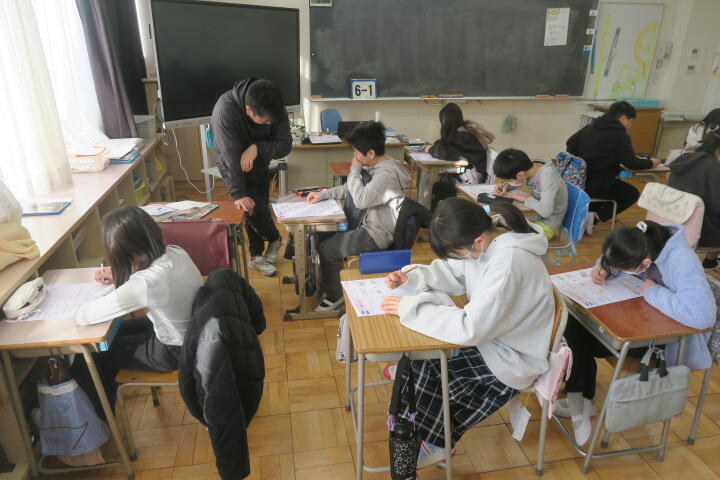 令和7年度 全ての記事 全ての記事 カテゴリ 今日の出来事 連絡事項 アーカイブ 2026年1月 (115) 2025年12月 (166) 2025年11月 (174) 2025年10月 (163) 2025年9月 (164) 2025年8月 (5) 2025年7月 (135) 2025年6月 (158) 2025年5月 (164) 2025年4月 (169) 2025年3月 (131) 2025年2月 (127) 2025年1月 (102) 2024年12月 (109) 2024年11月 (131) 2024年10月 (135) 2024年9月 (107) 2024年8月 (0) 2024年7月 (112) 2024年6月 (141) 2024年5月 (112) 2024年4月 (102) 2024年3月 (84) 2024年2月 (103) 2024年1月 (95) 2023年12月 (82) 2023年11月 (105) 2023年10月 (53) 2023年9月 (94) 2023年8月 (2) 2023年7月 (102) 2023年6月 (105) 2023年5月 (70) 2023年4月 (83) 5件 1件 5件 10件 20件 50件 100件 【6年生】算数 投稿日時 : 01/26 校長 カテゴリ:今日の出来事 6年生の算数はワークテストでした。 6年生の仕上げの問題を集中して解いていました。 【5年1組】図工 投稿日時 : 01/26 校長 カテゴリ:今日の出来事 1組の図工は「すてきな明かり」の学習の続きです。 本番用の粘土でランタン作りを始めていました。 【1年2組】朝の会 投稿日時 : 01/26 校長 カテゴリ:今日の出来事 2組の朝の会は給食のアンケートを行っているところでした。 給食をおいしいと感じるかなど、挙手で答えていました。 【1年1組】算数 投稿日時 : 01/26 校長 カテゴリ:今日の出来事 1組の算数は大きな数の学習の続きです。 位取りを意識した数のとらえ方を学習していました。 【全校朝会】 投稿日時 : 01/26 校長 カテゴリ:今日の出来事 本日の全校朝会は校庭で行いました。 日直の先生から、今月の目標「丁寧な言葉づかいをしよう」 の話がありました。 « 123456789 »