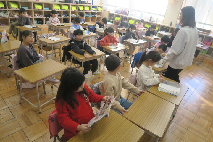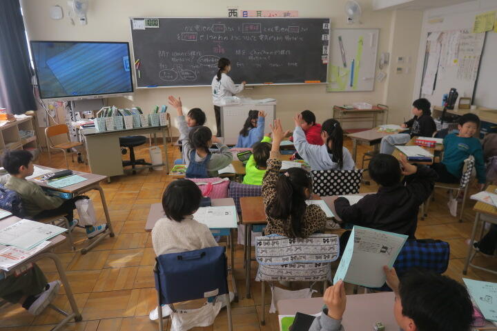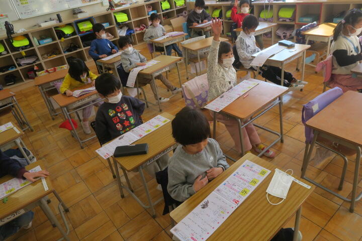 令和7年度 全ての記事 全ての記事 カテゴリ 今日の出来事 連絡事項 アーカイブ 2026年1月 (115) 2025年12月 (166) 2025年11月 (174) 2025年10月 (163) 2025年9月 (164) 2025年8月 (5) 2025年7月 (135) 2025年6月 (158) 2025年5月 (164) 2025年4月 (169) 2025年3月 (131) 2025年2月 (127) 2025年1月 (102) 2024年12月 (109) 2024年11月 (131) 2024年10月 (135) 2024年9月 (107) 2024年8月 (0) 2024年7月 (112) 2024年6月 (141) 2024年5月 (112) 2024年4月 (102) 2024年3月 (84) 2024年2月 (103) 2024年1月 (95) 2023年12月 (82) 2023年11月 (105) 2023年10月 (53) 2023年9月 (94) 2023年8月 (2) 2023年7月 (102) 2023年6月 (105) 2023年5月 (70) 2023年4月 (83) 5件 1件 5件 10件 20件 50件 100件 【2年生】学活 投稿日時 : 01/23 校長 カテゴリ:今日の出来事 2年生の学活は体育館でお楽しみ会です。 めちゃぶつけドッジボールをしていました。 【1年2組】国語 投稿日時 : 01/23 校長 カテゴリ:今日の出来事 2組の国語は、昔話をたのしもうの学習です。 教科書の挿絵からどんな昔話があるのかを見付けていました。 【1年1組】国語 投稿日時 : 01/23 校長 カテゴリ:今日の出来事 1組の国語は漢字の学習です。 「田」の練習をしているところでした。 【3年生】理科 投稿日時 : 01/22 校長 カテゴリ:今日の出来事 3年生の理科は豆電球の学習の続きです。 ワークシートを使って、予想をしながら回路の定義を学習していました。 【4年生】国語 投稿日時 : 01/22 校長 カテゴリ:今日の出来事 4年生の国語は書写の時間です。 「出発」という字を毛筆で練習しているところでした。 « 34567891011 »