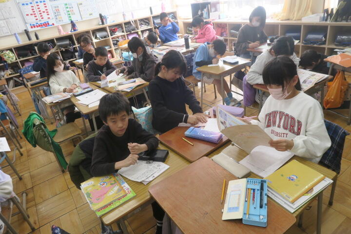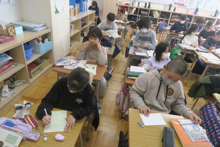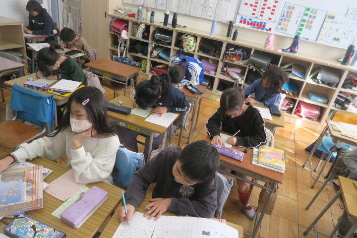 令和7年度 全ての記事 全ての記事 カテゴリ 今日の出来事 連絡事項 アーカイブ 2026年2月 (53) 2026年1月 (128) 2025年12月 (166) 2025年11月 (174) 2025年10月 (163) 2025年9月 (164) 2025年8月 (5) 2025年7月 (135) 2025年6月 (158) 2025年5月 (164) 2025年4月 (169) 2025年3月 (131) 2025年2月 (127) 2025年1月 (102) 2024年12月 (109) 2024年11月 (131) 2024年10月 (135) 2024年9月 (107) 2024年8月 (0) 2024年7月 (112) 2024年6月 (141) 2024年5月 (112) 2024年4月 (102) 2024年3月 (84) 2024年2月 (103) 2024年1月 (95) 2023年12月 (82) 2023年11月 (105) 2023年10月 (53) 2023年9月 (94) 2023年8月 (2) 2023年7月 (102) 2023年6月 (105) 2023年5月 (70) 2023年4月 (83) 5件 1件 5件 10件 20件 50件 100件 【5年1組】国語 投稿日時 : 02/03 校長 カテゴリ:今日の出来事 1組の国語は「どう考える?もしもの技術」の学習の続きです。 調べたことをノートに書き、その後スライドを作成して発表するそうです。 【4年生】学活 投稿日時 : 02/03 校長 カテゴリ:今日の出来事 4年生の学活は社会科見学でお世話になった方々へ、 お礼の手紙を書いていました。 【3年生】国語 投稿日時 : 02/03 校長 カテゴリ:今日の出来事 3年生の国語は、クラスの思い出作りのためにの学習です。 文章を書く学習で、各内容や書き方を教科書で確認していました。 【6年生】算数 投稿日時 : 02/03 校長 カテゴリ:今日の出来事 6年生の算数は速さの学習の続きです。 教科書の練習問題を解いていました。 【1年2組】音楽 投稿日時 : 02/03 校長 カテゴリ:今日の出来事 2組の音楽はおもちゃのちゃちゃちゃの学習です。 全員で合唱した後に、椅子を準備しているところでした。 « 456789101112 »
