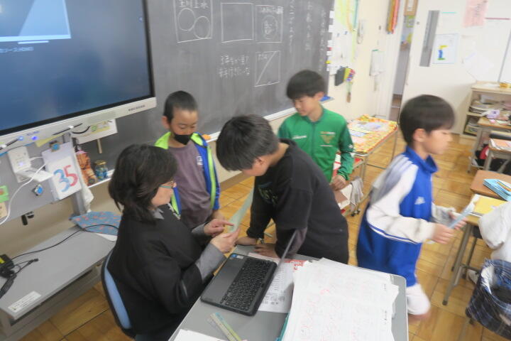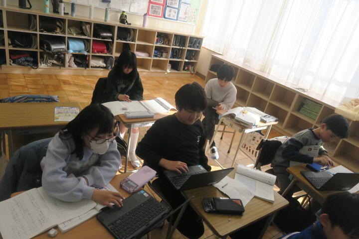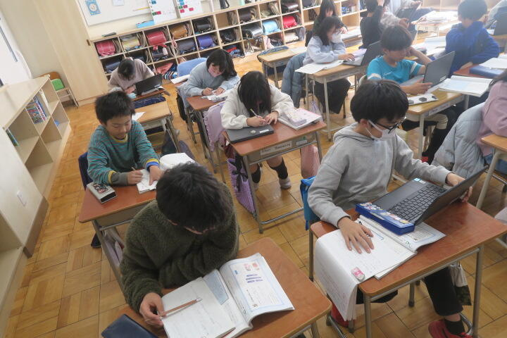 【5年1組】国語 投稿日時 : 02/03 校長 カテゴリ:今日の出来事 1組の国語は「どう考える?もしもの技術」の学習の続きです。 調べたことをノートに書き、その後スライドを作成して発表するそうです。