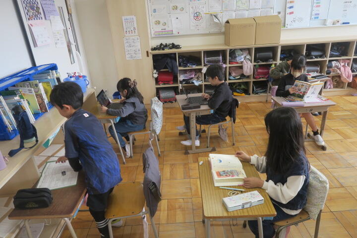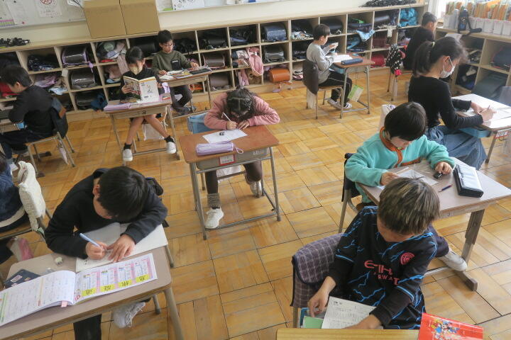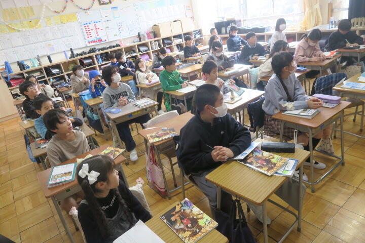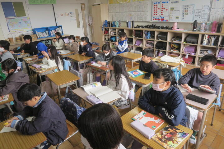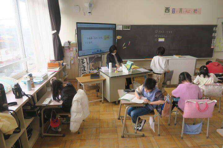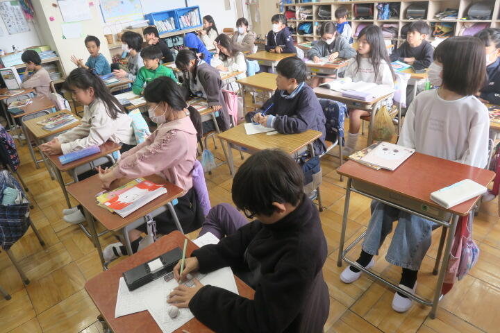 令和7年度 全ての記事 全ての記事 カテゴリ 今日の出来事 連絡事項 アーカイブ 2026年1月 (115) 2025年12月 (166) 2025年11月 (174) 2025年10月 (163) 2025年9月 (164) 2025年8月 (5) 2025年7月 (135) 2025年6月 (158) 2025年5月 (164) 2025年4月 (169) 2025年3月 (131) 2025年2月 (127) 2025年1月 (102) 2024年12月 (109) 2024年11月 (131) 2024年10月 (135) 2024年9月 (107) 2024年8月 (0) 2024年7月 (112) 2024年6月 (141) 2024年5月 (112) 2024年4月 (102) 2024年3月 (84) 2024年2月 (103) 2024年1月 (95) 2023年12月 (82) 2023年11月 (105) 2023年10月 (53) 2023年9月 (94) 2023年8月 (2) 2023年7月 (102) 2023年6月 (105) 2023年5月 (70) 2023年4月 (83) 5件 1件 5件 10件 20件 50件 100件 【6年生】理科 投稿日時 : 01/21 校長 カテゴリ:今日の出来事 6年生の理科は水溶液の学習です。 リトマス紙を使って、いろいろな水溶液が、 アルカリ性か酸性、中性化を実験するところでした。 【3年生】国語 投稿日時 : 01/21 校長 カテゴリ:今日の出来事 3年生の国語はワークテストでした。 終わった子は提出して個別学習をしていました。 【4年生】国語 投稿日時 : 01/21 校長 カテゴリ:今日の出来事 4年生の国語は本の紹介の学習です。 自分がお勧めの本を一人ずつ紹介しているところでした。 【5年2組】外国語 投稿日時 : 01/21 校長 カテゴリ:今日の出来事 2組の外国語は Where is ~ ? の学習です。 ワークシートを使いながら学習していました。 【5年1組】音楽 投稿日時 : 01/21 校長 カテゴリ:今日の出来事 1組の音楽は合唱「地球の向こう側の君へ」の学習です。 3種類の歌い方を意識して歌っていました。 « 5678910111213 »