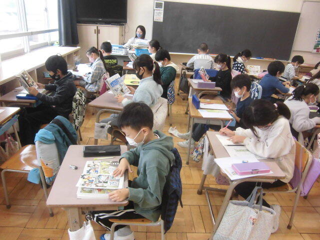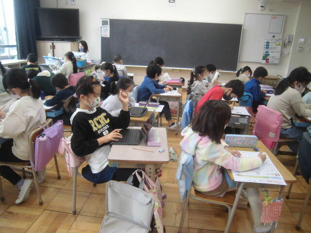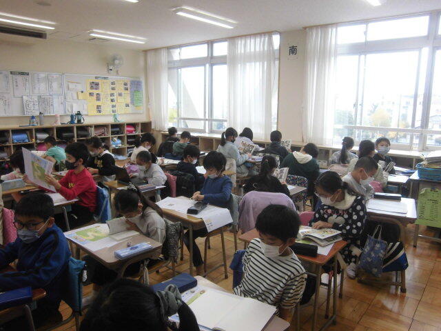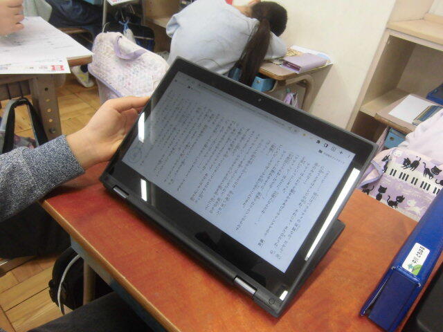 【3年生】国語 投稿日時 : 2022/11/15 校長 3年生の国語はテストを行っていました。終わりの頃だったので、ほとんどの人はテストを終え、静かに読書タイムです。タブレットのデジタル図書館から本を借りて読む子もいます。