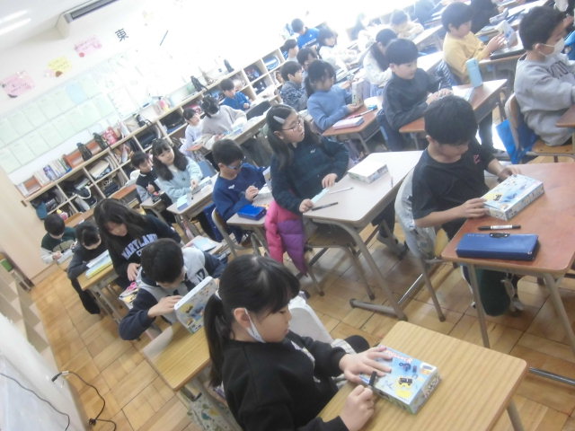 5年生の学活は、当番活動を決めた後、配りものをし、