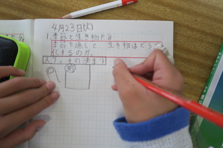 1年生の生活科は、お道具箱の中の確認と整理整頓の学習です。