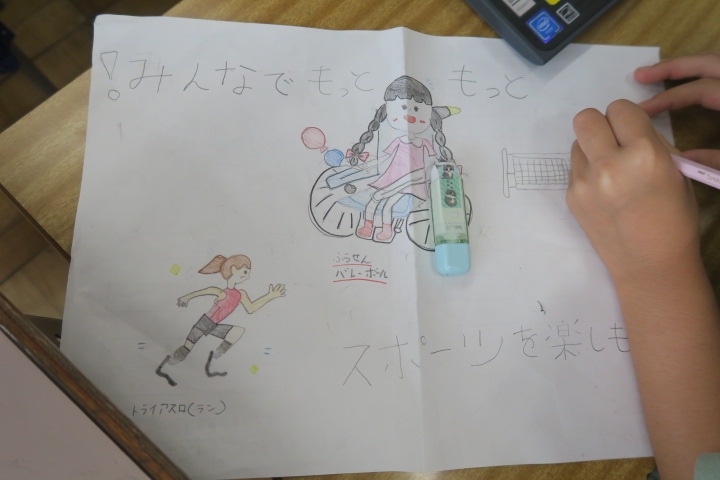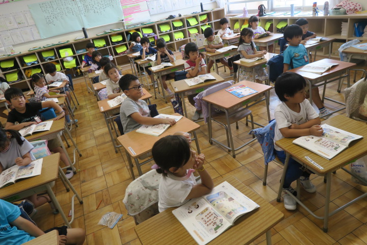 1年生の国語は詩「たべもの」をペアで読む発表をしていました。