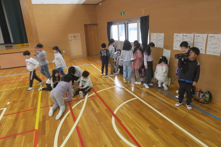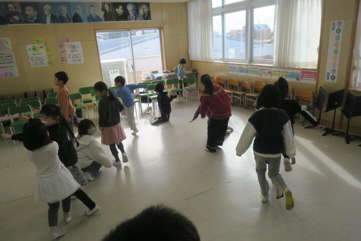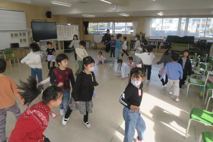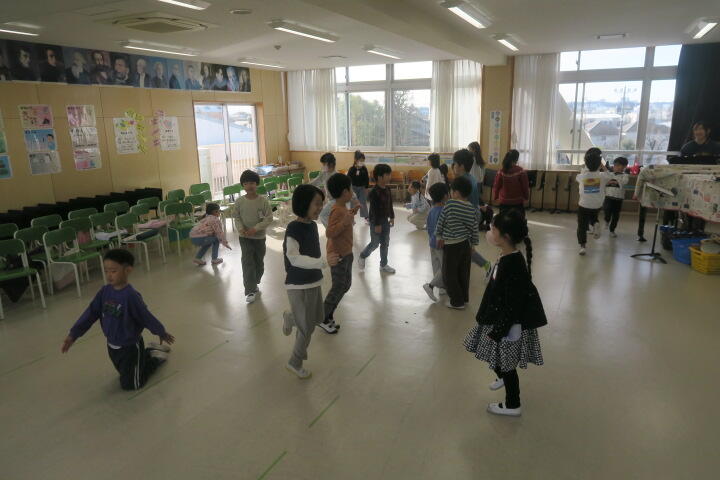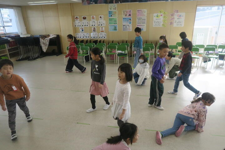 1組の音楽はピアノの曲のリズムに合わせて動く学習です。