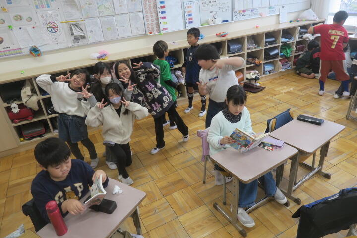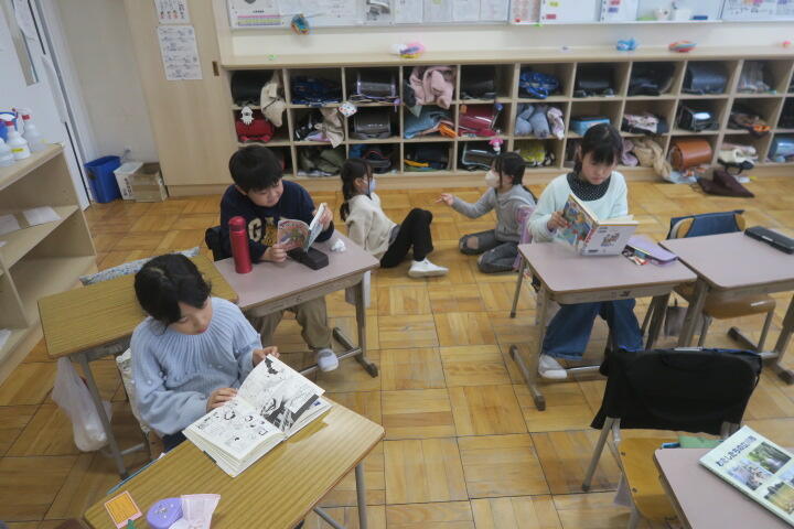 本をかたずけて教室の戻るところでした。
