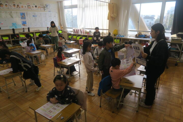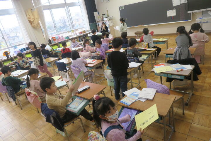 1組の国語はスイミーの劇の役を決めているところでした。