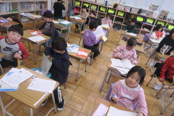 2年生で習った漢字をどれだけかけるかの挑戦をしていました。