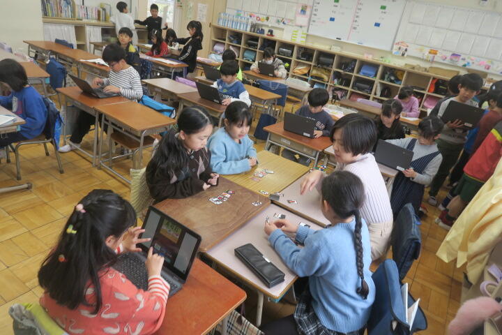 3年生の国語はグループごとに漢字の部首クイズをしていました。