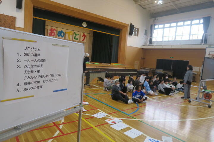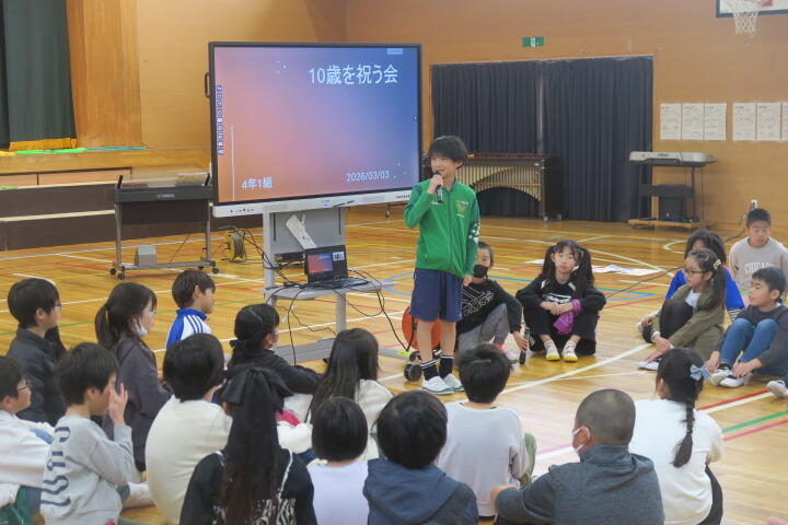 4年生が体育館で10歳を祝う会を行いました。