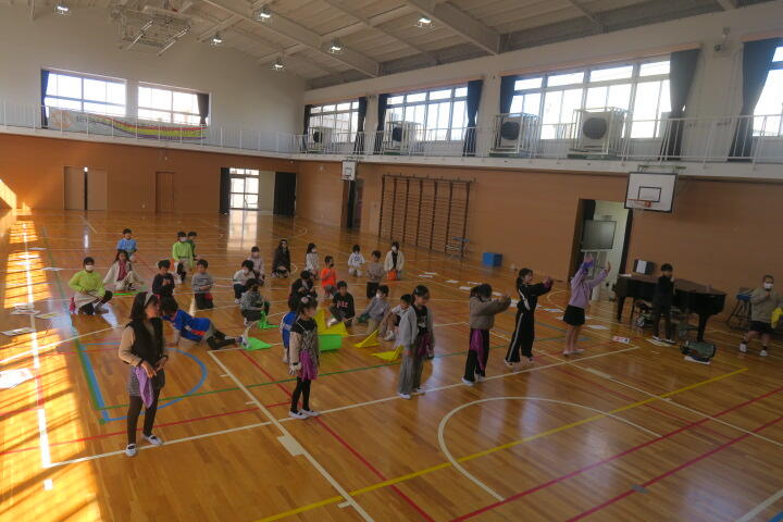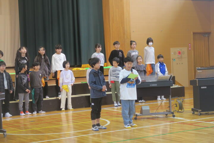 2年生の総合的な学習の時間は6年生を送る会の練習です。