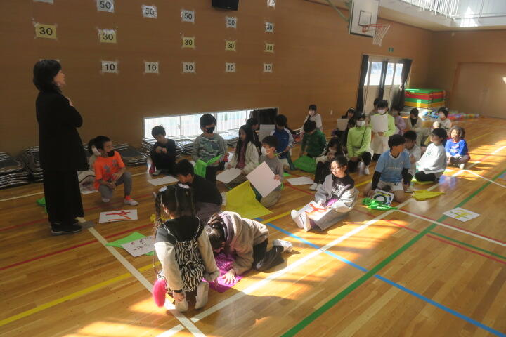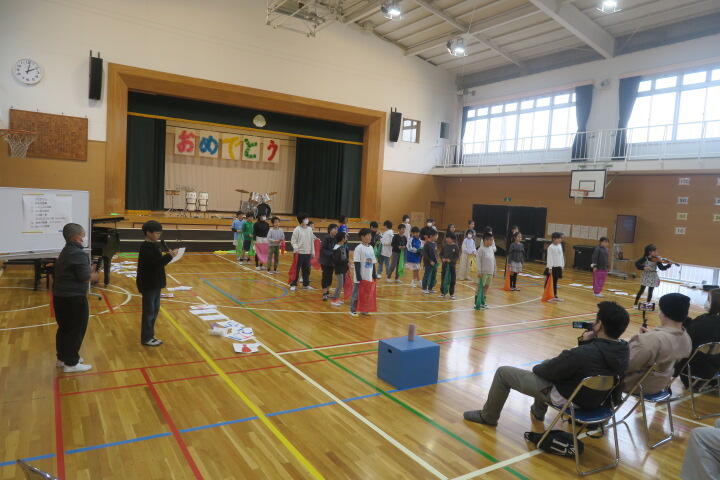 2年生の生活科は6年生を送る会の練習です。