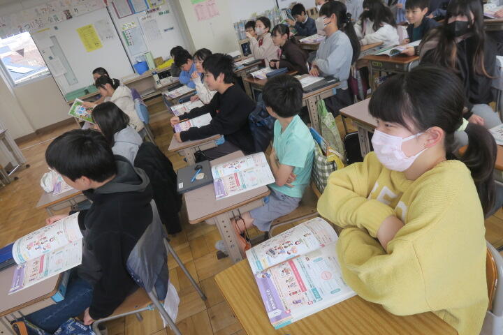 教科書やワークシートを使って1年間で学んだことを、