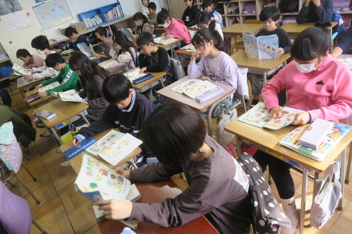 2組の国語は図書に時間です。