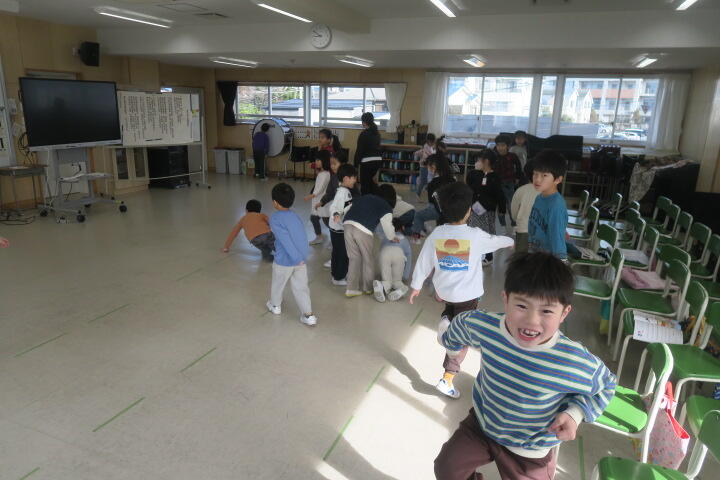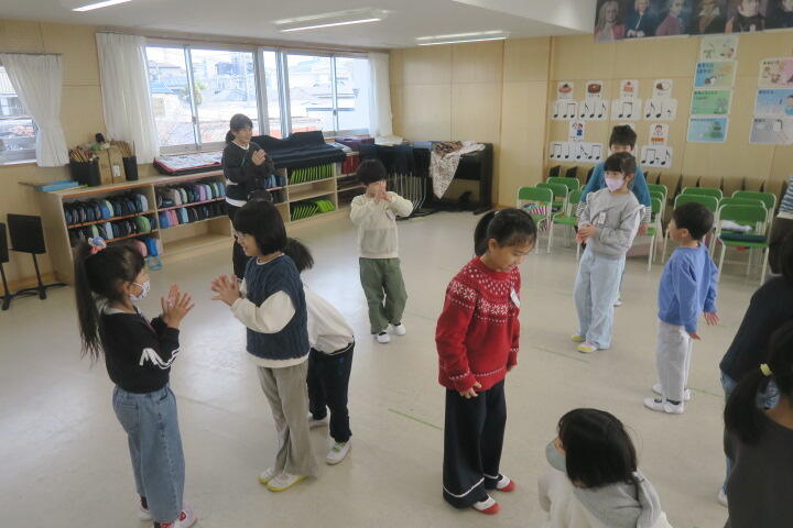 曲の最後に拍手の数だけグループになる遊びも同時に行っていました。
