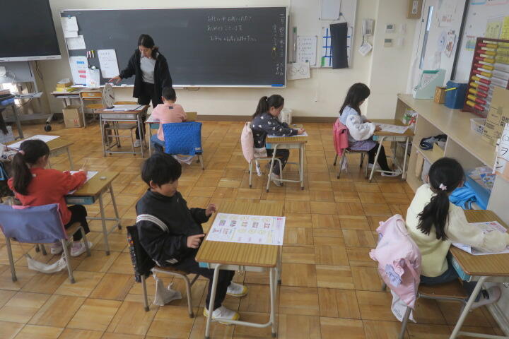 テスト以外の子は発表の準備や個別学習をしていました。