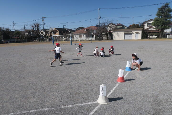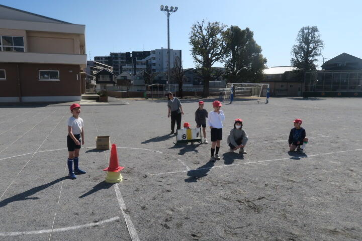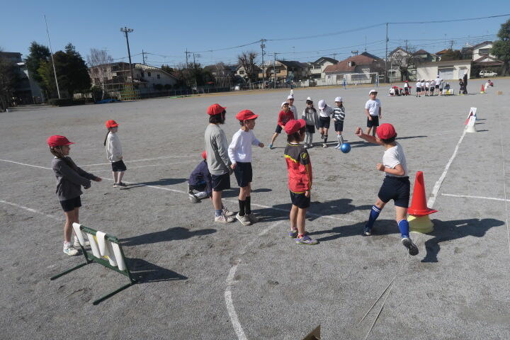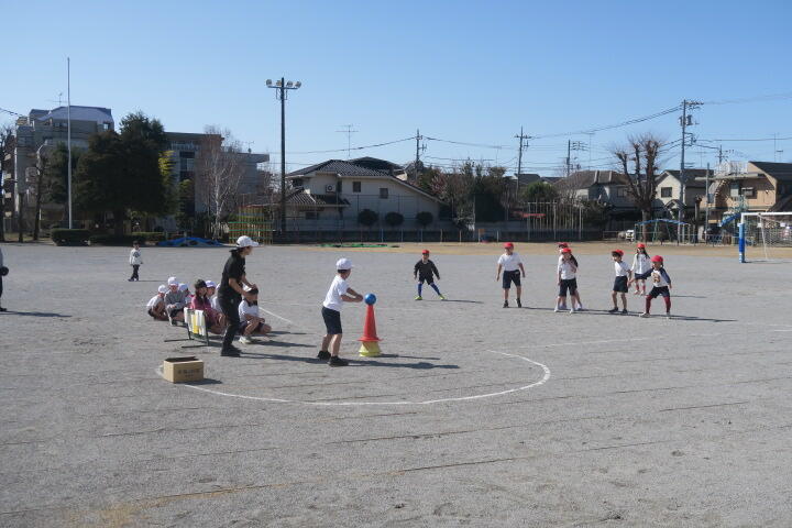 1人一つボールを持ち、的当てやコーン当てなどの運動をしていました。